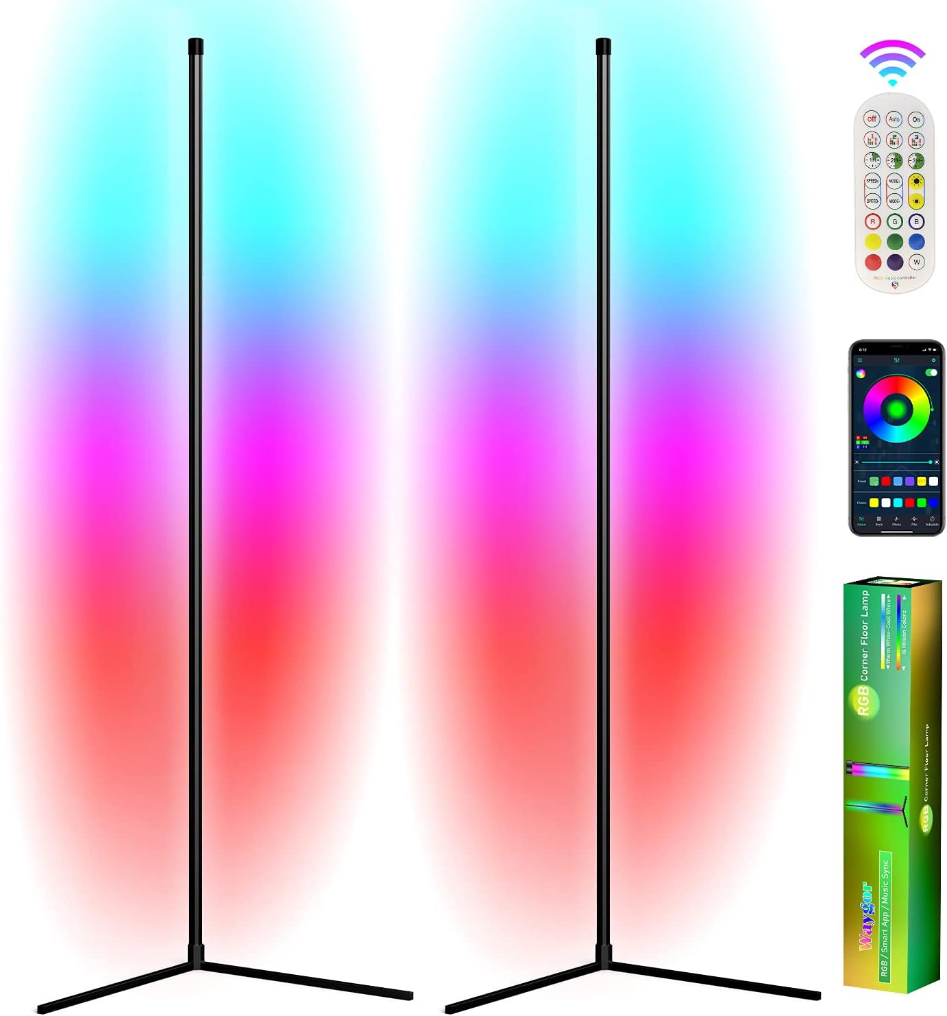 2pack Rgb Led Corner Lamp Waygor Led Rgb Color Changing Corner Floor Lamp Dimmable Corner Led Light With Bluetooth App And Remote Control 60 Corner Lighting For Living Room Bedroom